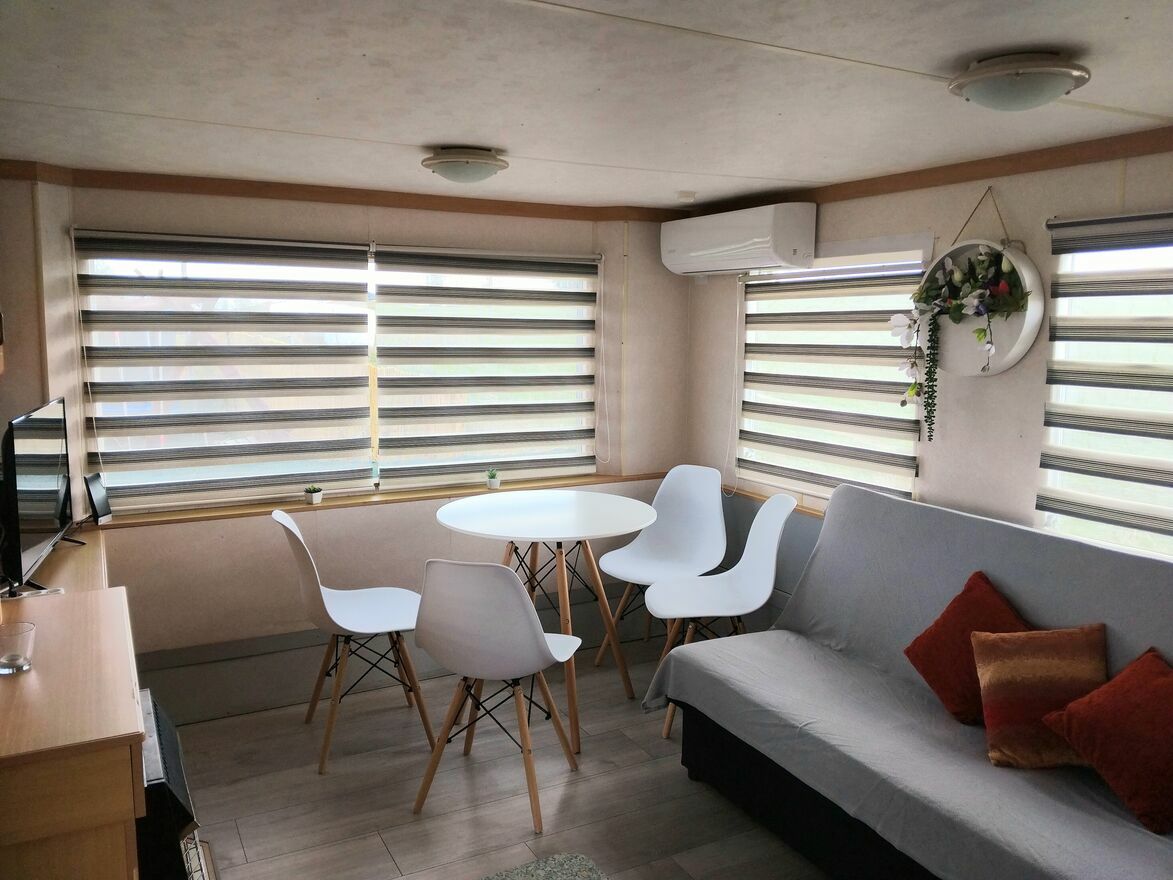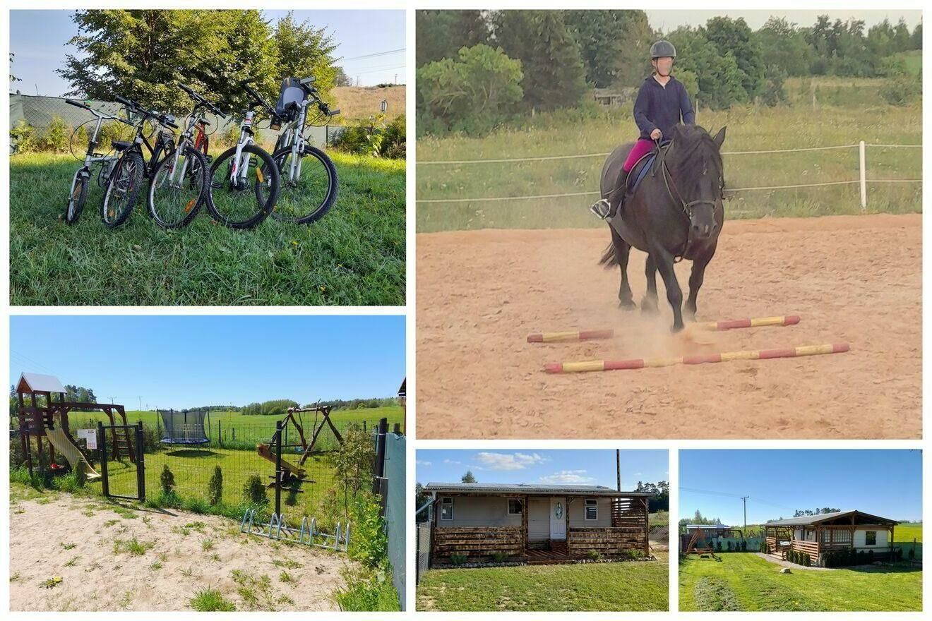 Posiadamy do wynajęcia dwa klimatyzowane domki angielskie, każdy na wyłączność, z dużymi tarasami, położone w msc. Szczybały Giżyckie (pomiędzy Giżyckiem a Rynem). Domki usytuowane w cichej, spokojnej okolicy na prywatnych, ogrodzonych działkach z miejscem parkingowym (każdy domek jest ogrodzony indywidualnie). W odległości 800 metrów znajduje się plaża gminna nad Jeziorem Okrągłym, 500 metrów do lasu. Wypoczynek w sam raz dla osób lubiących odpocząć od miejskiego zgiełku. Akceptujemy zwierzęta domowe.Każdy domek posiada 1 sypialnię z 2-osobowym łóżkiem, 1 sypialnię z dwoma łóżkami 1-osobowymi (z możliwością złączenia w jedno), salon z w pełni wyposażonym aneksem kuchennym i rozkładaną kanapą a także łazienkę (wc+prysznic). Domki są wyposażone i gotowe do zamieszkania (tv, lodówka, czajnik, kuchenka, mikrofalówka, pościel, podstawowe przyprawy, itp.). Ponadto na działce znajdują się ławki i stoły, miejsce na ognisko (+drewno na 1-2 ogniska). Przestrzeń pomiędzy działkami zajmuje wspólny plac zabaw wyposażony w huśtawki, piaskownicę, zjeżdżalnię, trampolinę. Do dyspozycji gości udostępnione są także bezpłatnie rowery górskie.